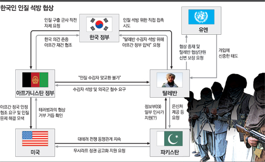 탈레반은 여전히 ‘인질 맞교환’에 요지부동이다. 협상 대표의 안전보장과 중재를 요청하며 유엔을 끌어들이려 했지만 유엔은 신중한 태도를 보인다.