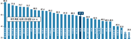 한국인은 75.0%가 ‘경제 안정’을 최우선 과제로 꼽은 데 이어 ‘고도 경제성장’과 ‘물가 안정’을 선택한 사람이 각각 57.9%, 50.1%였다.