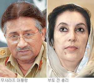 부토 전 총리는 이날 CNN과의 인터뷰에서 “무샤라프 대통령이 내 요구를 받아들여 현재 겸하고 있는 군 참모총장 직을 사임하기로 했다”며 ‘권력 분점 협상’ 진행 상황을 설명했다.