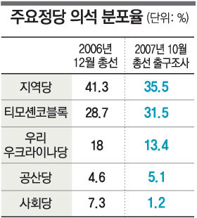 《지난달 30일 실시된 우크라이나 총선에서 친(親)서방 노선을 걷는 ‘오렌지혁명’ 세력이 친(親)러시아 성향의 지역당을 누르고 의회 다수파가 될 것이 유력해졌다. 이에 따라 지역당 총수인 빅토르 야누코비치 총리가 실각하고 오렌지혁명 세력이 연정을 구성해 정국을 재주도할 것으로 보인다.》