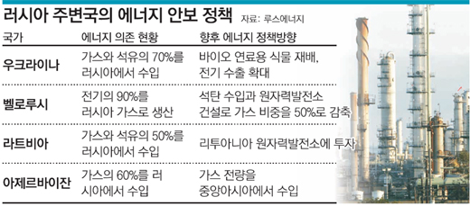우크라이나 벨로루시 등 가스나 석유가 부족한 이들 국가는 옛 소련에서 분리 독립한 지 15년이 넘었지만 공통적으로 ‘대(對)러시아 에너지 의존 과다’라는 문제를 안고 있다.
