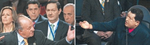 좌충우돌 발언으로 정평이 난 우고 차베스 베네수엘라 대통령이 10일 돌출 발언을 늘어놓다가 스페인 국왕에게 공개 면박을 당했다. 이날까지 칠레에서 열린 스페인어 및 포르투갈어권의 유럽과 중남미 지도자 모임인 이베로 아메리칸 정상회담 폐막식에서였다.