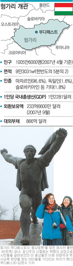 《헝가리 수도 부다페스트 서남쪽 끝자락에 위치한 ‘동상 공원’. 마르크스와 레닌 등 공산주의 상징 인물들의 동상과 석상 40여 점이 모여 있다. 이 공원은 공산주의의 승리가 아닌 ‘몰락’을 상징하는 장소다. 한때 부다페스트 곳곳에서 시민들을 내려다보던 조형물들을 체제 변혁 후 한데 모았기 때문이다. 공산주의의 폐해를 잊지 않겠다는 헝가리인의 굳은 의지를 보여 준다. 부다페스트의 중부유럽대에서 사회학을 공부하는 미국인 제시카 풀턴(20·여) 씨는 겨울방학에 맞춰 자신을 찾아온 어머니 포르네(42) 씨와 동상들 사이를 누비며 긴 대화를 나누고 있었다.》