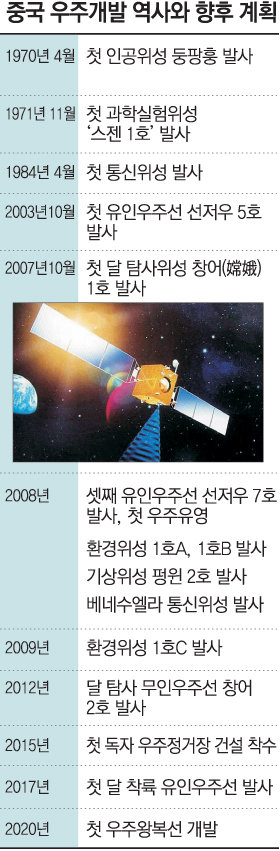 양 원장은 이어 “(이런 기술을 바탕으로) 중국이 올해는 유인우주선인 선저우(神舟) 7호와 환경위성, 기상위성, 통신위성 등 10여 개 위성을 우주로 쏘아 올릴 것”이라고 덧붙였다.