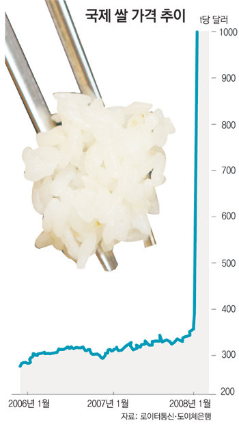 베트남 인도 이집트 중국 캄보디아 등 쌀 생산국들은 잇달아 수출을 중단했으나 자국의 수급 상황은 오히려 나빠지는 분위기다. 아지스 니바드 카브랄 스리랑카 중앙은행 총재는 “아시아의 쌀값 폭등은 금융위기보다 더 심각하다”고 우려했다.