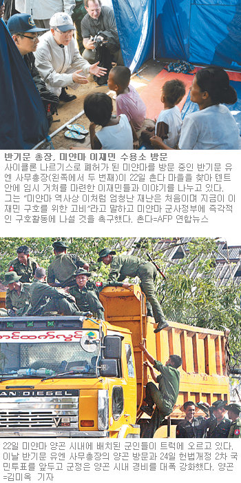 한편 이날 반기문 유엔 사무총장의 양곤 방문과 24일 헌법개정 2차 국민투표를 앞두고 미얀마 정부는 양곤 시내 검문검색과 경비를 대폭 강화했다. 무장한 경찰과 군인들이 3∼4m 간격으로 도로 곳곳을 지켰고 호텔과 상가, 관공서를 출입하는 차량과 사람들에 대해서도 일일이 검문을 했다.