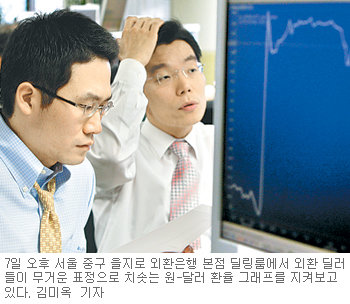 외환시장에서 달러당 원화 환율이 폭등하는 등 금융 불안이 이어지면서 7일 기획재정부와 금융위원회, 한국은행 등 정부 당국들은 긴박하게 움직였다. 특히 외환 주무부처인 기획재정부의 강만수 장관 등 재정부 당국자들은 국정감사를 받으며 외환시장을 챙기느라 하루 종일 촉각을 곤두세웠다.