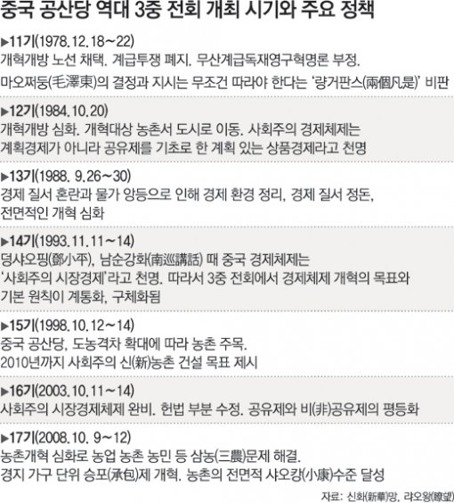 3중 전회는 중국 공산당의 새 노선과 각 기 지도부의 중요 정책을 결정해 온 매우 중요한 회의다.