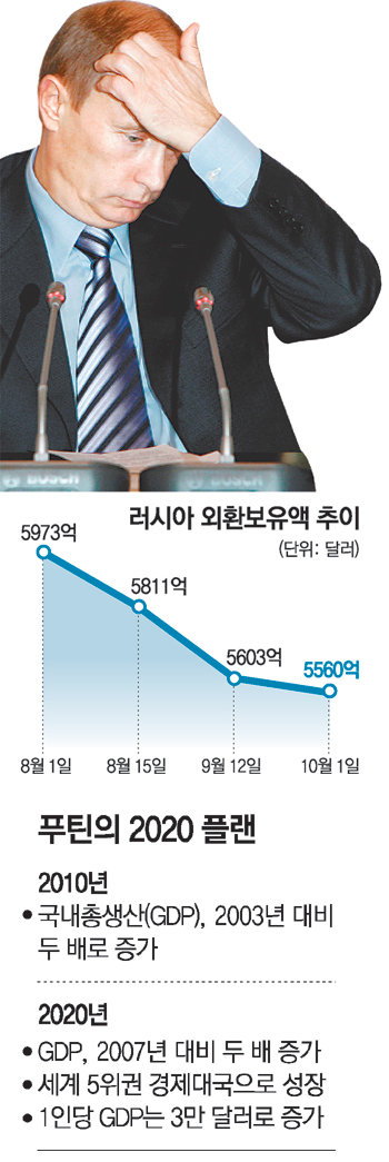 ▽그랜드 플랜 차질=이른바 2020 푸틴 플랜은 러시아가 안정과 고속성장을 구가하던 시절에 짜놓은 구상이다.