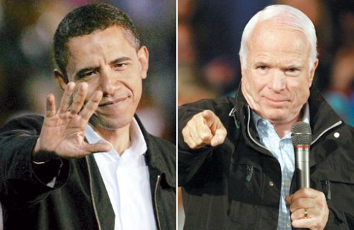 투표일을 앞두고 발표된 최종 여론조사에서 버락 오바마 민주당 후보가 평균 7%포인트가량 존 매케인 공화당 후보를 앞서는 것으로 나타났다. 퓨리서치센터 조사에선 49% 대 42%로 지난주의 15%포인트보다 격차가 줄었지만 여전히 큰 차이를 보이고 있다.