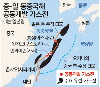 양국은 지난해 6월 룽징(龍井·일본명 아스나로·翌檜) 유전은 공동개발 대상구역, 춘샤오(春曉·일본명 시라카바·白樺) 유전은 일본 기업이 투자형태로 개발에 참여한다는 점에 합의했다.