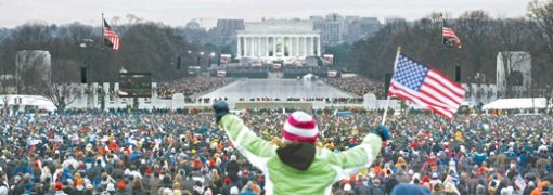 버락 오바마 대통령 당선인의 취임은 아직 이틀 남았지만 미리 ‘상경’한 40만 인파가 몰(의사당에서 링컨기념관 사이 길게 펼쳐진 광장 지역)의 서쪽 끝자락을 가득 메웠다. ‘우리는 하나(We are one)’를 주제로 열린 취임축하 공연 내내 환호와 웃음의 도가니였다.