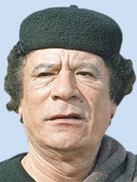 반미, 반유대 게릴라 단체를 적극적으로 지원해 온 그는 1988년에 발생한 로커비 사건(팬암기 폭파사건) 등으로 국제사회로부터 경제제재를 받았다. 그러나 그는 최근에 서방 세계에 화해의 손짓을 하고 있다. 2004년 미국과 외교관계를 복원했으며, 미국은 2006년 리비아를 테러지원국 명단에서 삭제했다.