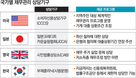 반면 선진국에선 여러 상담기관이 부채 감면과 자활이 연계된 체계적인 가계부채 탈출 프로그램을 시행하고 있다.