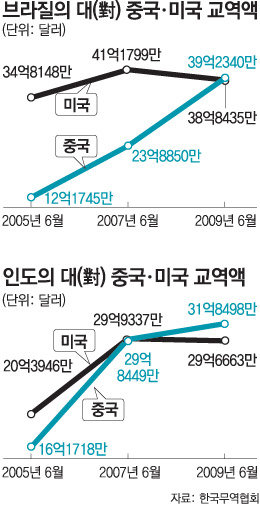 브라질 회사원 에디네이 헤발라투 씨(30)는 새로운 사업 제의를 받고 고심 중이다. 최근 은행에 다니는 친구들로부터 중국 제품 수입사업을 하자는 제의가 들어온 것. 그는 멕시코에서 금속제품을 수입하는 회사에 다니다 몇 년 전 중국의 다국적기업으로 이직했다. 경제위기 후 미국과 거래하던 회사들이 감원을 하거나 문을 닫을 때도 중국을 거래처로 둔 회사들은 끄떡없었다. 헤발라투 씨는 “미국이나 남미 대신 중국과 거래하는 사업이 각광받고 있다”며 “자원이 많은 브라질과 인건비가 싼 중국은 앞으로도 계속 좋은 파트너가 될 것”이라고 말했다.