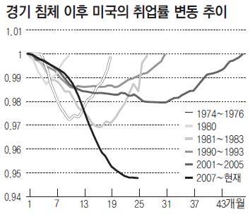 지난해 12월 미국 실업률 성적표는 예상보다 심각했다. 한 달간 없어진 일자리만도 8만5000개에 이르렀다. 건설업에서 5만3000명이 일자리를 잃었고 제조업에선 2만7000명이 실직했다. 12월 실업률은 11월과 같은 10.0%이지만 경제학자들은 일자리를 구하지 못한 수십만 명이 구직활동을 포기했기 때문이라고 분석했다. 만약 구직활동을 포기한 사람들의 수치를 포함하고 사실상 실업상태인 파트타임 근로자까지 합칠 경우 광의의 실업률은 17.3%까지 치솟을 수 있다고 전문가들은 추산했다. 크리스티나 로머 백악관 경제자문위원장은 “실업률이 용인할 수 없을 정도로 높다”며 “민간부문에서 일자리 창출을 급격하게 늘리는 조치가 필요하다”고 말했다. 하지만 기업가들은 경기회복이 멀었다고 보고 신규채용을 꺼리고 있다. 2007년부터 시작된 경기불황 이후 일자리 700만 개가 사라졌다.