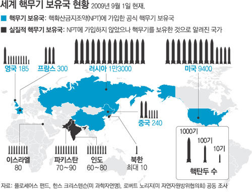 프랑스 역시 핵무기 유지 의사가 있으며 중국은 새 미사일과 탄두 개발을 할 것으로 알려졌다. 인도와 파키스탄은 핵무기를 갖고 있지만 핵확산금지조약(NPT) 당사국이 아니어서 어떤 제약도 받지 않는다. 북한은 핵실험을 하고 있지만 NPT에서 이미 탈퇴한 상태다.