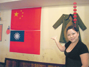 진먼 현의 중심가에 자리한 식당 롄훙루(戀紅樓)의 2층에는 벽 한쪽이 마오쩌둥(毛澤東)의 큰 사진 한 장으로 채워져 있고, 또 다른 벽에는 중국 오성홍기와 대만 청천백일기가 위아래로 나란히 걸려 있다. 도예가이기도 한 식당 사장 왕밍쭝(王明宗) 씨가 ‘양안은 하나’라는 뜻으로 걸어놓은 것이라고 종업원은 설명했다.