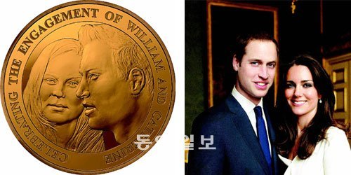 영국 조폐국이 23일 윌리엄 왕손과 약혼녀 케이트 미들턴 씨의 결혼 기념주화를 공개했다. 하지만 주화 속의 인물, 특히 약혼녀의 얼굴이 실물과 닮지 않았다는 의견이 쏟아져 조폐국이 난처한 처지에 놓였다. 조폐국은 “작은 주화에 젊은 사람의 얼굴을 새기는 것은 어려운 일”이라며 “새로 고칠 계획은 없다”고 밝혔다.