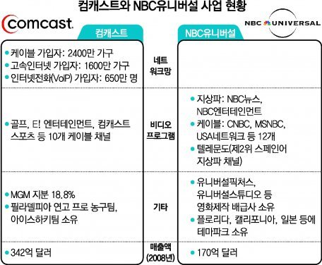 18일 미국 연방통신위원회(FCC)는 미국 최대 케이블TV 업체인 컴캐스트가 미국의 3대 지상파 네트워크 가운데 하나인 NBC방송(NBC유니버설)을 인수하는 것을 승인했다. NBC는 미국 최초의 지상파 TV다.