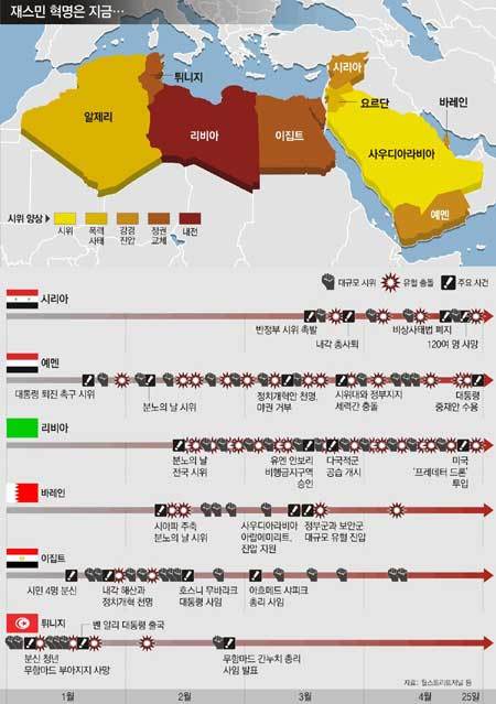 시리아에서 계속되는 당국의 반정부 시위 유혈진압에 대해 국제사회가 한목소리로 비판하고 있다. 서방은 물론이고 아랍권 내에서도 바샤르 알아사드 대통령 정권에 대한 비난이 거세다. 지난 주말 최소 120명의 시위 참가자가 숨진 데 이어 25일 오전 6시경 탱크와 중화기를 앞세운 정부군이 시위 중심지인 다라를 급습해 최소한 25명의 주민이 숨졌다고 AFP통신이 전했다.