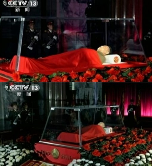 김정일 시신(출처= CCTV 캡처)