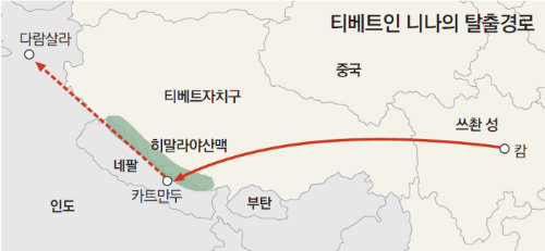 올 10월 중국 쓰촨(四川) 성의 캄에 살던 티베트인 여성 니마는 히말라야 산맥을 오르기 시작했다. 전문적인 산악 장비도 없이 허름한 평상복 차림이었다.