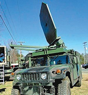전자기광선을 이용한 비살상 무기 ADS를 지붕 위에 장착한 군용차량. 사진 출처 스타스앤드스트라이프스