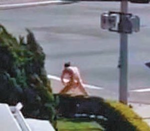 16일 오전 제이슨 러셀 씨가 나체로 미국 샌디에이고 시 거리를 활보하는 모습. 폐쇄회로(CC)TV 화면에 찍혔다. 사진 출처 TMZ