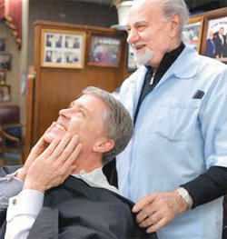 워싱턴 로비스트 제프 마이어의 머리를 손질하고 있는 이발사 주세페 조 콰트로네 씨(78). 사진출처 워싱턴포스트
