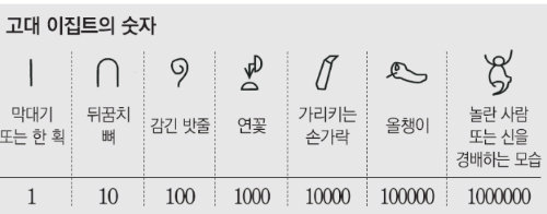 아라비아숫자가 인도에서 왔다는 강의 때 교수님의 이야기가 떠올랐다. 숫자가 없었으면 얼마나 불편할 지 끔찍하다. 고대 이집트 문자는 숫자같은 느낌이 안나고 그림같을 것 같다. 신기하다.