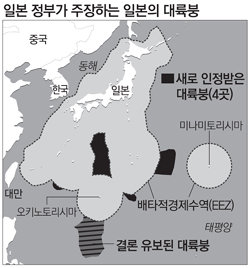 유엔 대륙붕한계위원회가 일본 주변 4개 해역 31만 km²를 새로 일본의 대륙붕으로 인정했다고 일본 외무성이 27일 밝혔다. 이는 일본 국토 면적의 82% 규모다. 외무성은 관련 사실을 기자회견을 통해 발표하면서 “일본의 대륙붕 확대가 인정받은 것은 이번이 처음으로 일본 해양권익 확충에 중요한 일보”라고 강조했다.