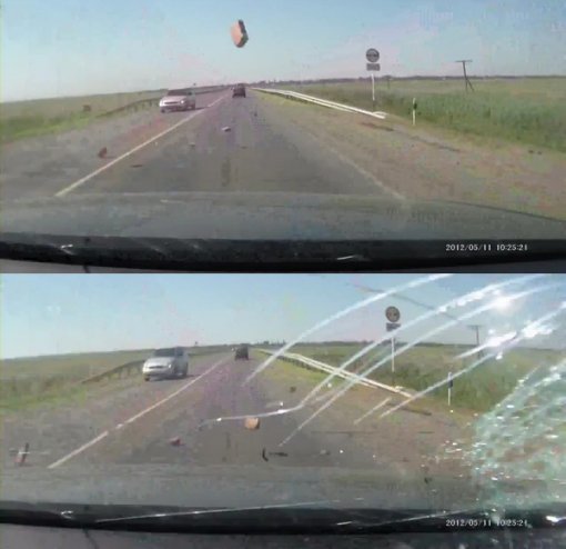 ‘운전 중 날아온 벽돌’이란 제목으로 국내 누리꾼들의 눈길을 끌고 있는 이 영상은 러시아 로스토브 지역에서 일어난 사건으로 알려졌다.