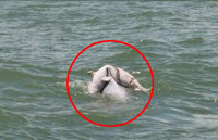 지난 8일 중국판 트위터인 ‘웨이보’를 통해 한 누리꾼이 ‘죽은 새끼 업은 돌고래’ 영상을 공개했다.