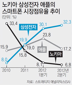 스마트폰 시장에서 삼성전자와 애플에 밀려 고전 중인 노키아는 지난달 5일 선보인 신제품으로도 시장의 호응을 얻는 데 실패했다. 마이크로소프트의 새 모바일 운영체제 ‘윈도폰8’을 적용한 ‘루미아 920’과 ‘루미아 820’을 선보였지만 신제품 발표 당일 뉴욕증시에서 노키아의 주가는 15.9%나 하락했다.