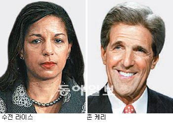 버락 오바마 미국 대통령이 국무장관에 수전 라이스 유엔대사(48), 국방장관에 존 케리 상원 외교위원장(69)으로 2기 행정부 윤곽을 잡은 것으로 알려졌다. 워싱턴포스트는 13일 “행정부 고위 관계자에 따르면 오바마 대통령이 케리에게 국방장관직을 맡아 달라 요청할 것을 고려하고 있으며 데이비드 퍼트레이어스 전 중앙정보국(CIA) 국장의 후임으로는 대테러정책 선임보좌관인 존 브레넌이 유력하다”라고 보도했다.