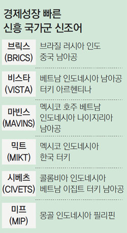 최근 10여 년간 세계경제의 성장 견인차 역할을 해왔던 브릭스(BRICS) 5개국 즉, 브라질 러시아 인도 중국 남아프리카공화국의 성장세가 다소 주춤해져 뒤를 이어 성장을 주도할 국가에 대한 관심이 높아지고 있다.
