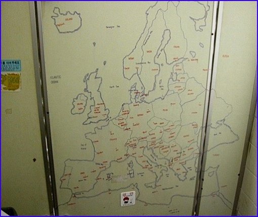 공개된 사진 ‘아무나 못하는 낙서’ 사진에는 유럽 지도를 화장실 문에 자세하게 그려진 낙서가 담겨있다.