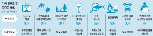 같은 시간 연방정부 산하 미국의 소리(VOA) 방송국에서는 제작 인력이 아닌 행정·관리직 공무원들(정규직 1200명의 20% 정도)이 짐을 챙기고 있었다. 이들은 이날 최장 4시간 동안만 근무하고 무급 휴직 명령을 받았다. 한 직원은 “무급 휴직 기간엔 회사 휴대전화와 e메일도 사용할 수 없다”고 걱정스러운 표정을 지었다.