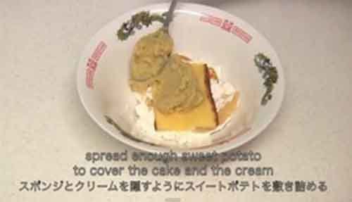 ‘라면 같은 케이크’는 일본의 한 요리사의 작품으로 고구마, 우유와 계란과 젤라틴, 스폰지 케이크로 만들어졌다.