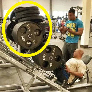 그런데 이 남성은 인간의 다리로 받치고 있다고 믿기 힘들 정도로 많은 바벨 플레이트를 쌓아 놓고 힘을 과시하고 있다.