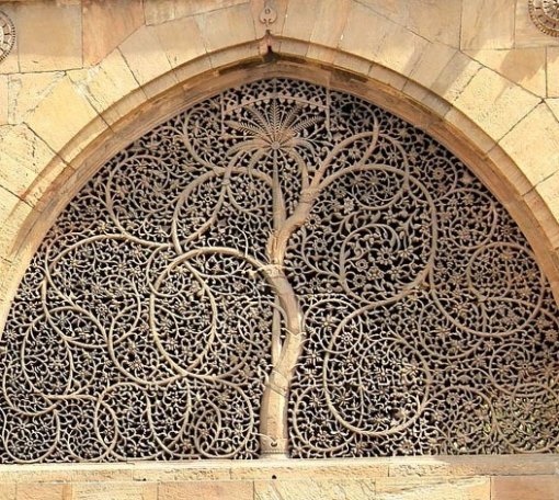 게재된 사진은 돌로 만들어진 창문으로 인도 구자라트주 아마다바드에 위치한 모스크의 외벽이다.