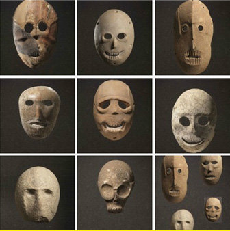 9000년 전 가면, 각기 다른 표정과 연령...어디에 썼나 보니?