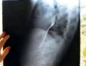병원에서 촬영한 엑스레이 사진을 보면 알 수 있듯이, 칼린체스쿠가 병원을 찾았을 당시 포크는 칼린체스쿠의 목에 걸려 있었다.