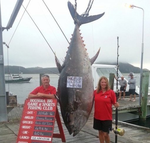영국 데일리메일은 뉴질랜드 해역에서 50대 여성 바다낚시꾼이 잡은 중량 411.6kg, 길이 2.66m짜리 초대형 참치를 잡았다고 전했다.