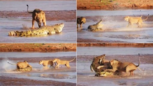 사자 셋 vs 악어 하나, 먹이 놓고 벌인 결투의 승자는?