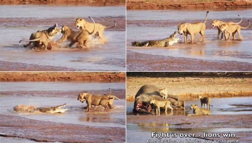 새끼 악어의 99%는 어류, 도마뱀, 다른 악어에게 잡아먹히기 때문에 살아남은 극소수의 악어는 강자 중의 강자라고 알려져 있다. 그러나 계속되는 사자 무리의 합동 공격에 결국 악어가 큰 부상을 입고 후퇴했다고 뱅크스 씨는 이 싸움의 결과를 전했다.