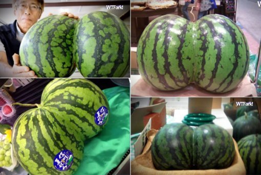 5일(현지 시간) 미국 허핑턴포스트는 두 덩어리가 하나로 붙은 수박을 재배한 일본인 농부 시바타 미츠오 씨(58)를 소개하며 수박의 모습이 크고 풍만한 엉덩이처럼 보인다고 전했다.