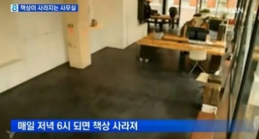 최근 외신에 따르면 이 사무실은 퇴근 시간인 오후 6시가 되면 업무용 컴퓨터 등이 놓인 책상은 사라져 일을 하고 싶어도 할 수 없게 된다.