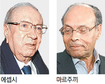 튀니지는 2011년 민주화 혁명으로 독재자 진 엘아비딘 벤 알리 대통령을 내쫓았다. 이후 3년여 만인 23일 대통령 선거를 실시했다. 튀니지 국영방송이 보도한 출구조사에 따르면 과거 독재정권에서 요직을 두루 맡았던 세속주의 성향의 정치인 베지 카이드 에셉시 후보(87)가 득표율 47.8%로 1위를 차지했다. 독재정권 몰락 뒤 지금까지 임시 대통령을 맡아온 반독재 투사 문시프 마르주끼 후보(69)는 득표율 26.9%로 2위였다. 27명의 대선 후보 난립으로 과반 득표자가 나오지 않아 12월 말 결선 투표를 치르게 됐다.